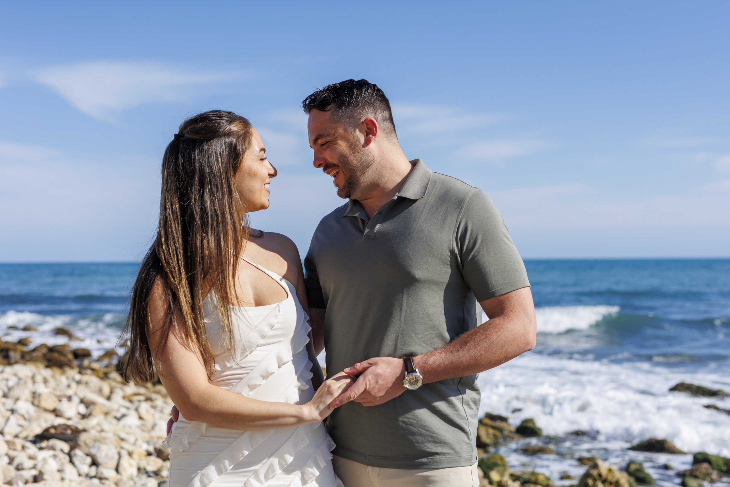 Coastal views offer clean, timeless compositions. The horizon, water, and sky keep the focus on connection rather than distraction. It’s perfect for relaxed couple portraits. Early mornings are especially calm.