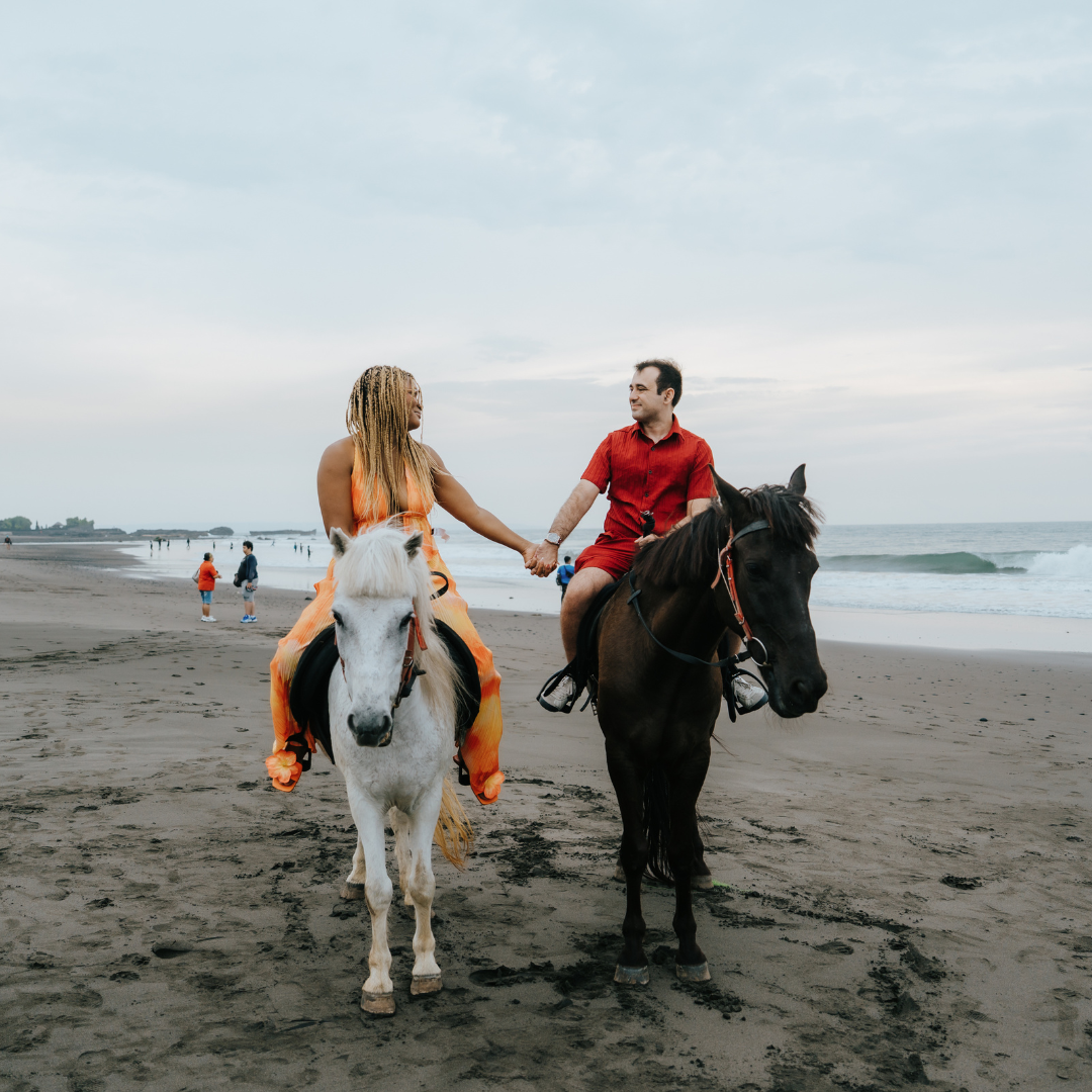 Composition rules in photos work great for couples’ portraits and help to add interest to them. The Rule of Thirds leaves negative space around the couple but still focuses on them in the foreground. The leading lines will drive the viewer’s eyes to them, which is the general “rule” for photos. Couple photoshoot by Nabila, Localgrapher in Bali