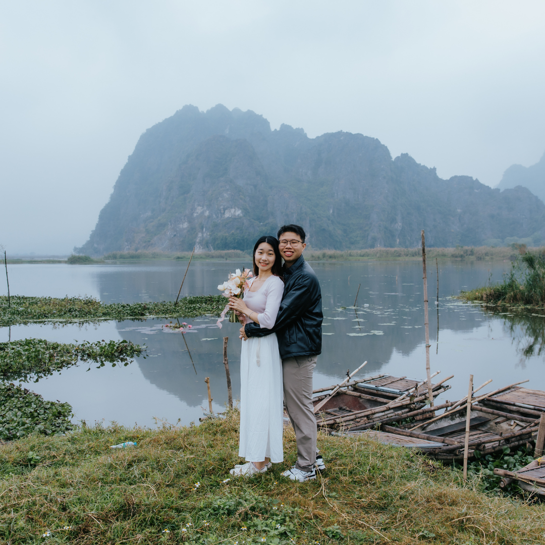 There’s something special about your loved one wrapping their arms around you from behind. This type of pose feels natural and truly depicts a deep connection — perfect for heartfelt couple photos. Proposal photoshoot by Duong, Localgrapher in Hanoi