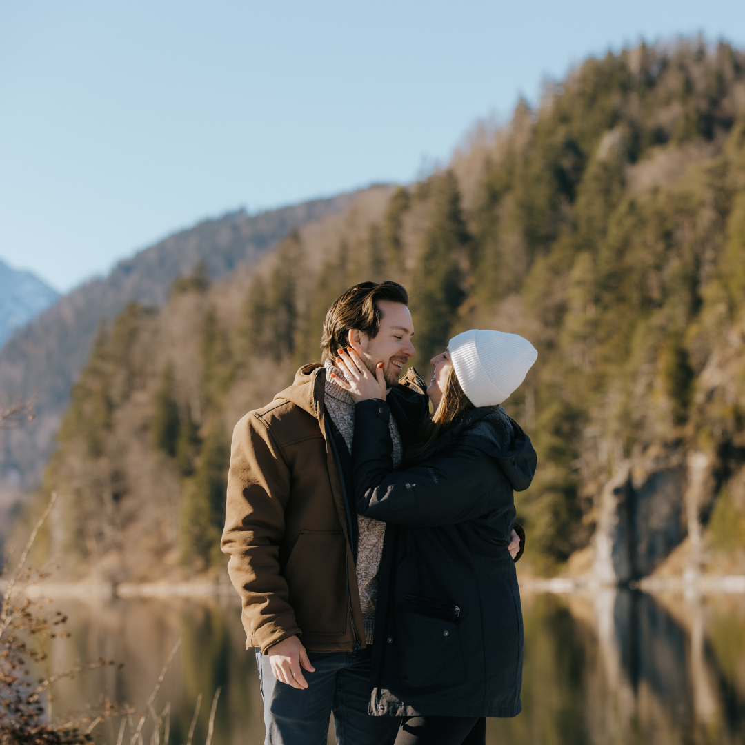 There’s a moment of pure passion, intensity, and love that comes with looking at each other right before the kiss. That will show through any good photograph. Try picking your partner up, or just having your personal photographer capture only your faces looking at one another. Proposal photoshoot by Tatiana, Localgrapher in Neuschwanstein Castle