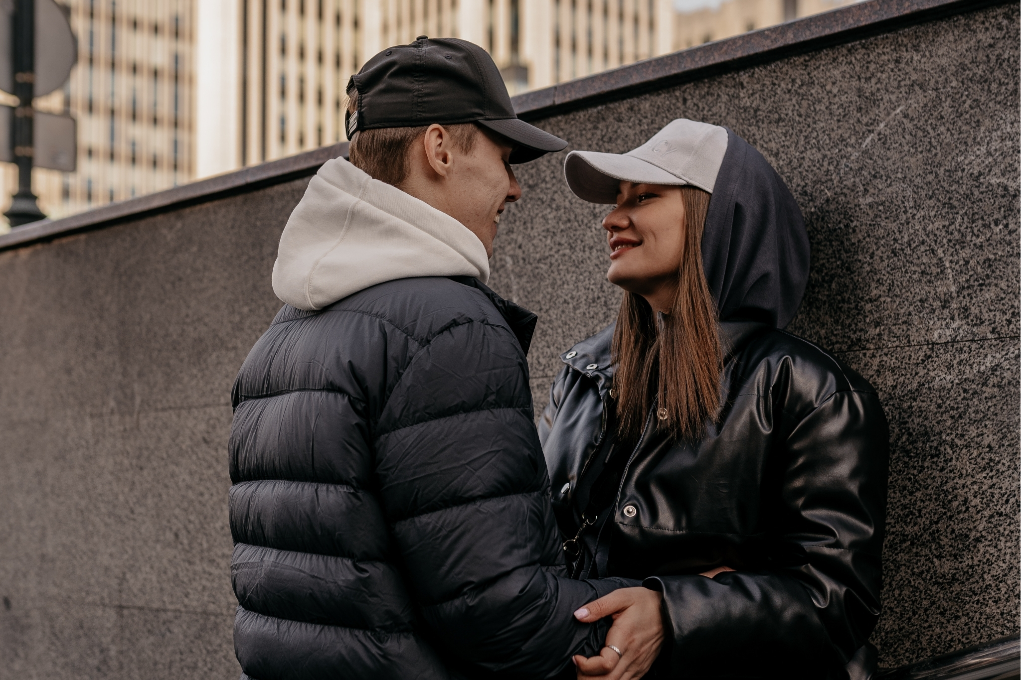 Layering is a subtle way to add depth and movement to your photos. Leather jackets, flannels, oversized knits, or casual blazers give photographers more visual options as you move and interact. Layers also encourage natural gestures—adjusting a jacket, slipping hands into pockets—which makes images feel candid rather than posed. This kind of ease is at the heart of great 90s couple photos.